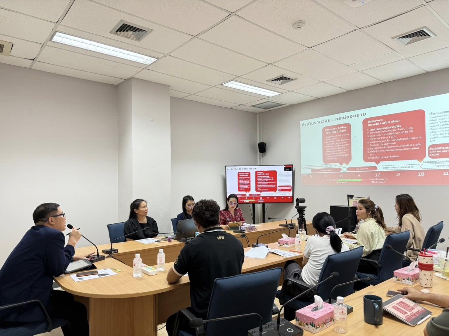 กิจกรรมครั้งนี้ คุณกานต์กุญช์ บำรุงชาติ หัวหน้าส่วนบริหารงานวิจัย,คุณอนิรุต พร้อมสุข หัวหน้าฝ่ายประเมินผล พร้อมด้วยทีมงานส่วนบริหารงานวิจัยร่วมชี้แจงการดำเนินงาน และตอบข้อซักถามจากนักวิจัยอย่างใกล้ชิด เพื่อให้การดำเนินงานวิจัยเป็นไปอย่างมีประสิทธิภาพและสอดคล้องตามระเบียบ