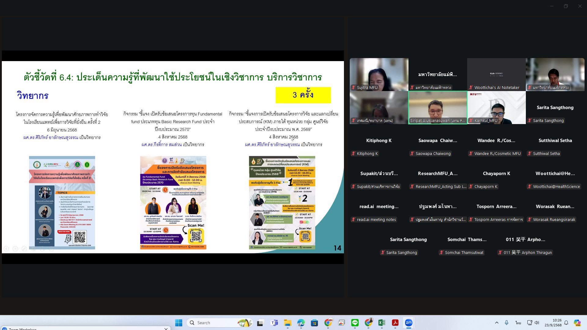 ส่วนบริหารงานวิจัยฯ ในนามเลขานุการคณะกรรมการส่งเสริมพัฒนางานวิจัย จัดกิจกรรมรายงานผลการดำเนินงานรอบ 12 เดือน ของหน่วยวิจัย กลุ่มวิจัย และศูนย์วิจัย ประจำปี 2568