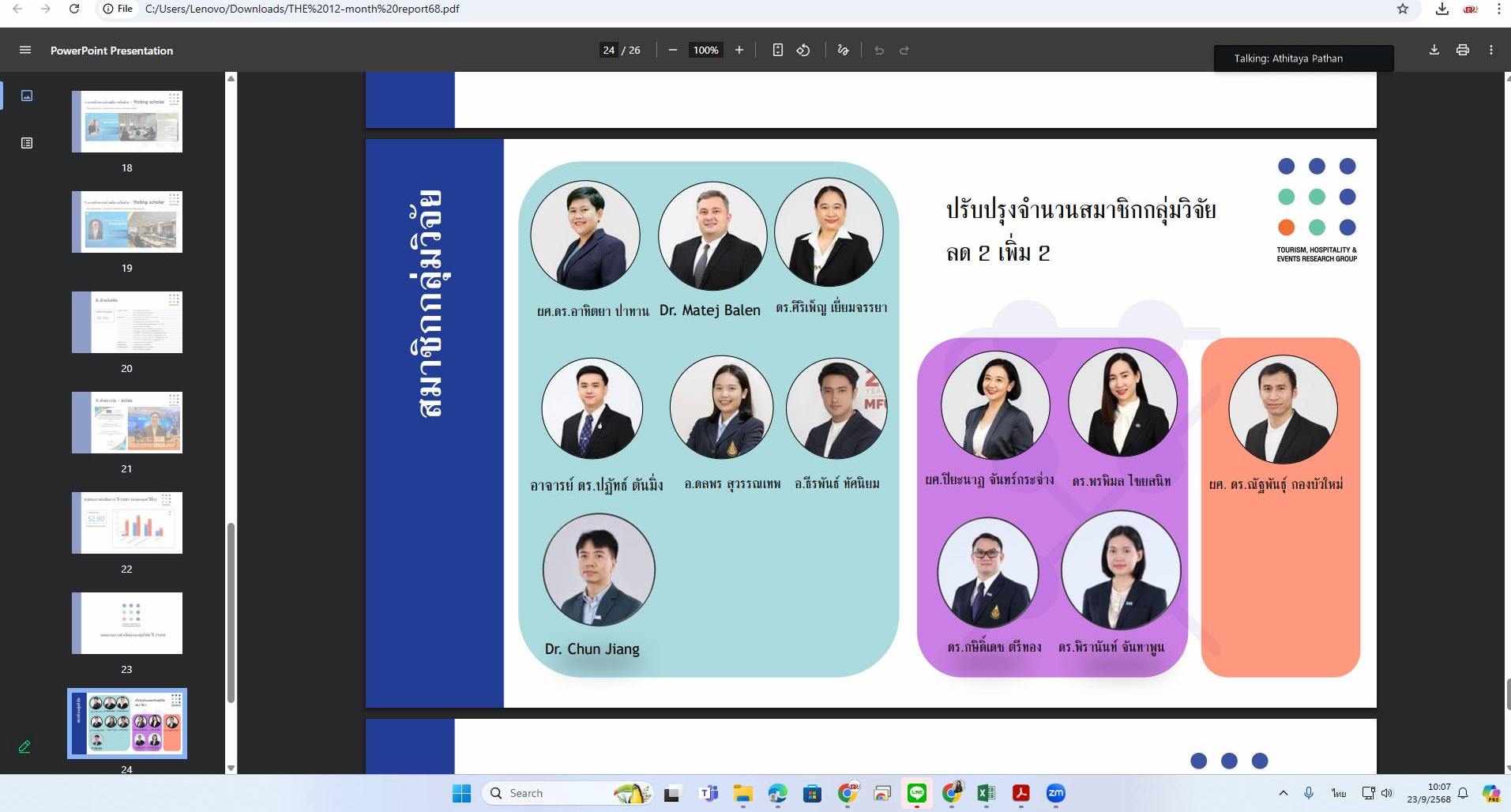 ลำดับการนำเสนอวันที่ 23 กันยายน 2568