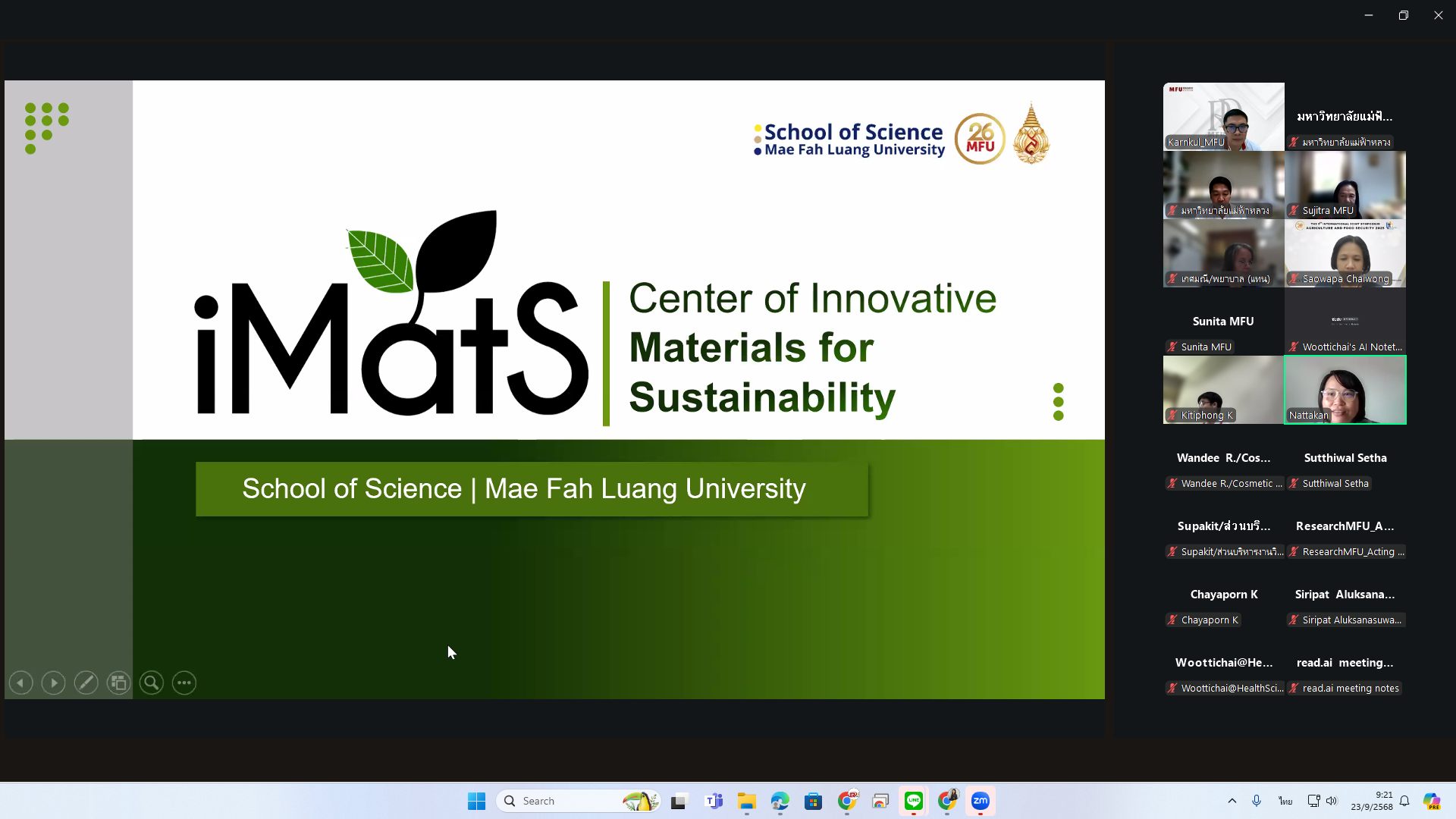 มหาวิทยาลัยแม่ฟ้าหลวงได้สนุบสนุนทุนประเภทหน่วย กลุ่ม ศูนย์วิจัย ตามประกาศมหาวิทยาลัยแม่ฟ้าหลวง เรื่อง ผลการพิจารณาหน่วยวิจัย กลุ่มวิจัย ศูนย์วิจัย ที่ขอรับทุนสนับสนุนการวิจัย จากมหาวิทยาลัยแม่ฟ้าหลวง ประจําปีงบประมาณ พ.ศ. 2568 จำนวน 28 โครงการ ซึ่งได้นำเสนอผลการดำเนินงานในวันนี้เป็น วันแรกของกิจกรรม (Day 1) ผ่านระบบ Zoom Meeting จำนวน 21 โครงการ โดยมุ่งหวังให้เกิดการแลกเปลี่ยนองค์ความรู้ระหว่างนักวิจัยและผู้ทรงคุณวุฒิ พร้อมทั้งเป็นกลไกสำคัญในการขับเคลื่อนมหาวิทยาลัยแม่ฟ้าหลวงสู่การเป็นศูนย์กลางการวิจัยและนวัตกรรมที่ได้รับการยอมรับในระดับนานาชาติ ![]()