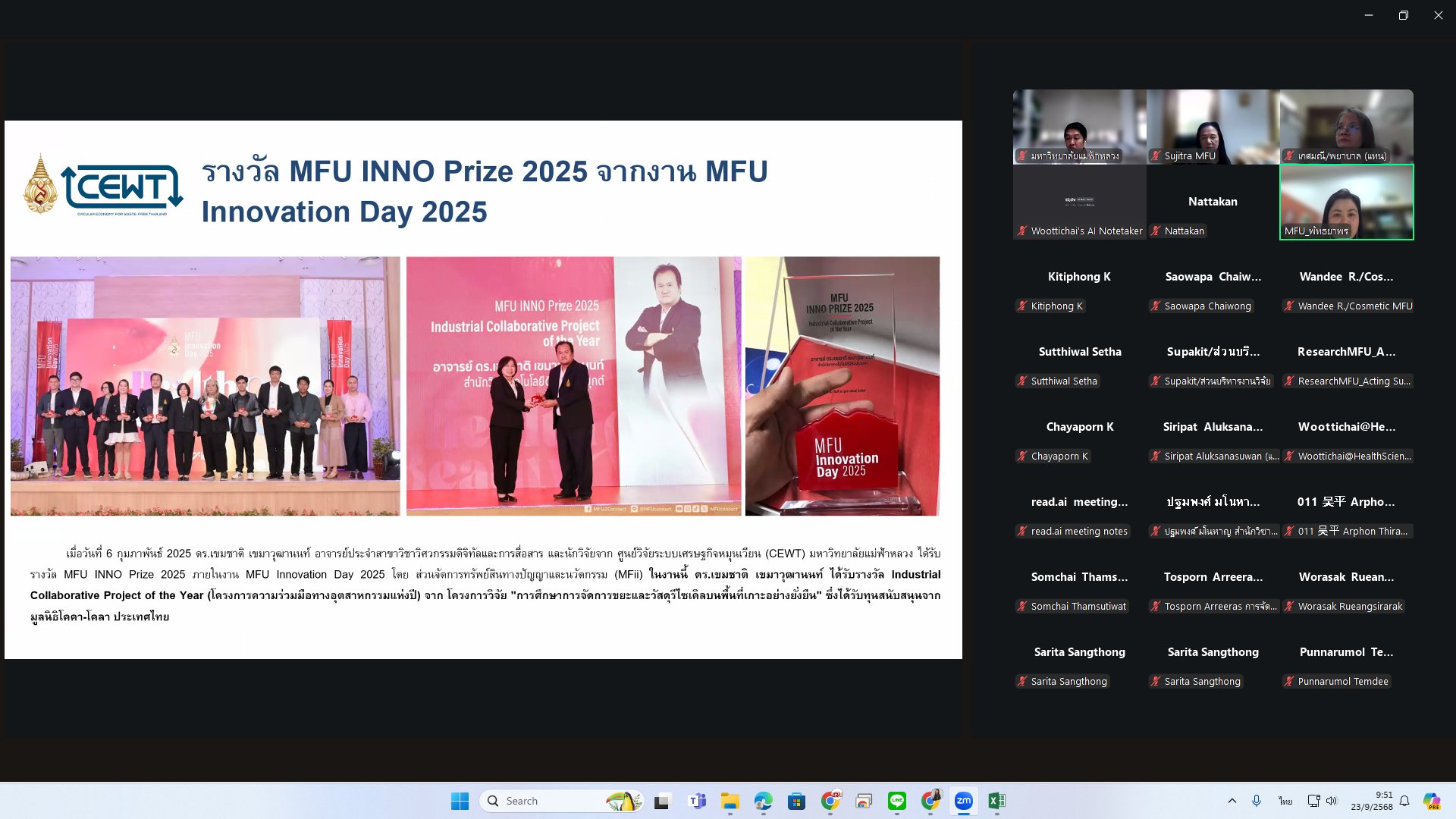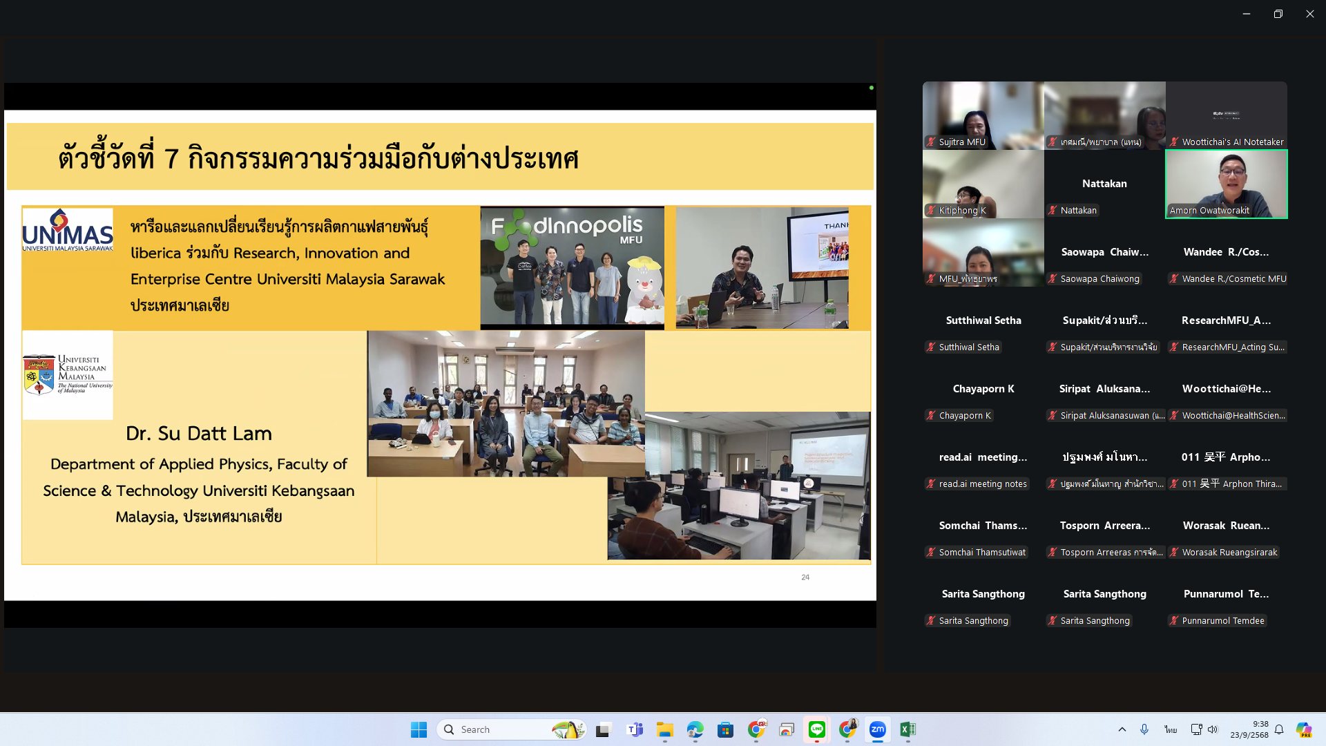 กิจกรรมครั้งนี้ยังเป็นส่วนหนึ่งในการสะท้อนศักยภาพและความร่วมมือของนักวิจัย MFU ในการสร้างงานวิจัยที่ตอบโจทย์ ความยั่งยืน (Sustainability) และการพัฒนา คุณภาพชีวิต (Well-being) ของสังคมในทุกมิติ ![]()