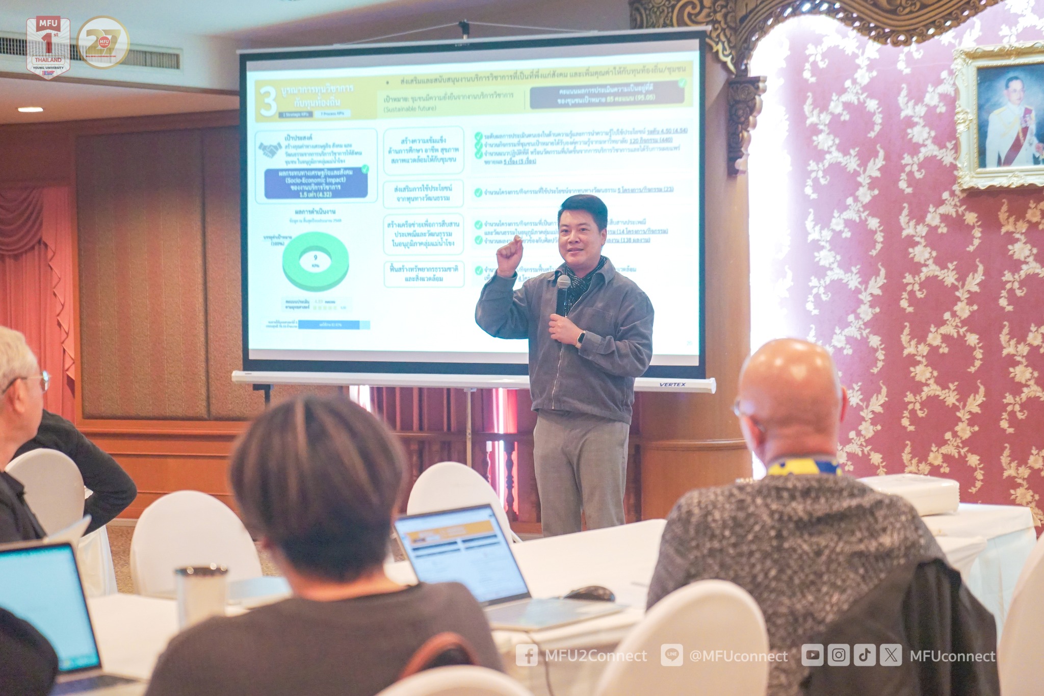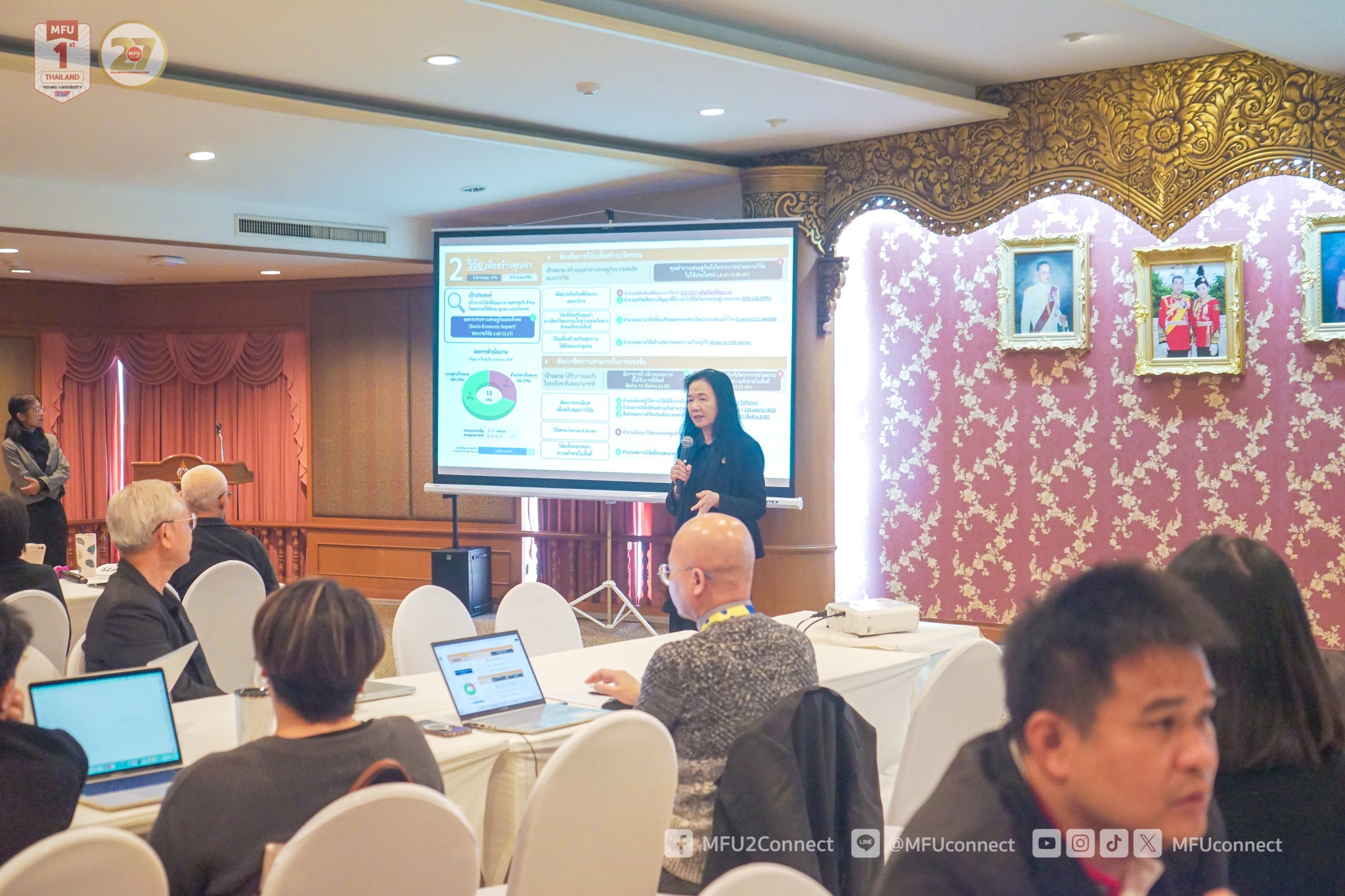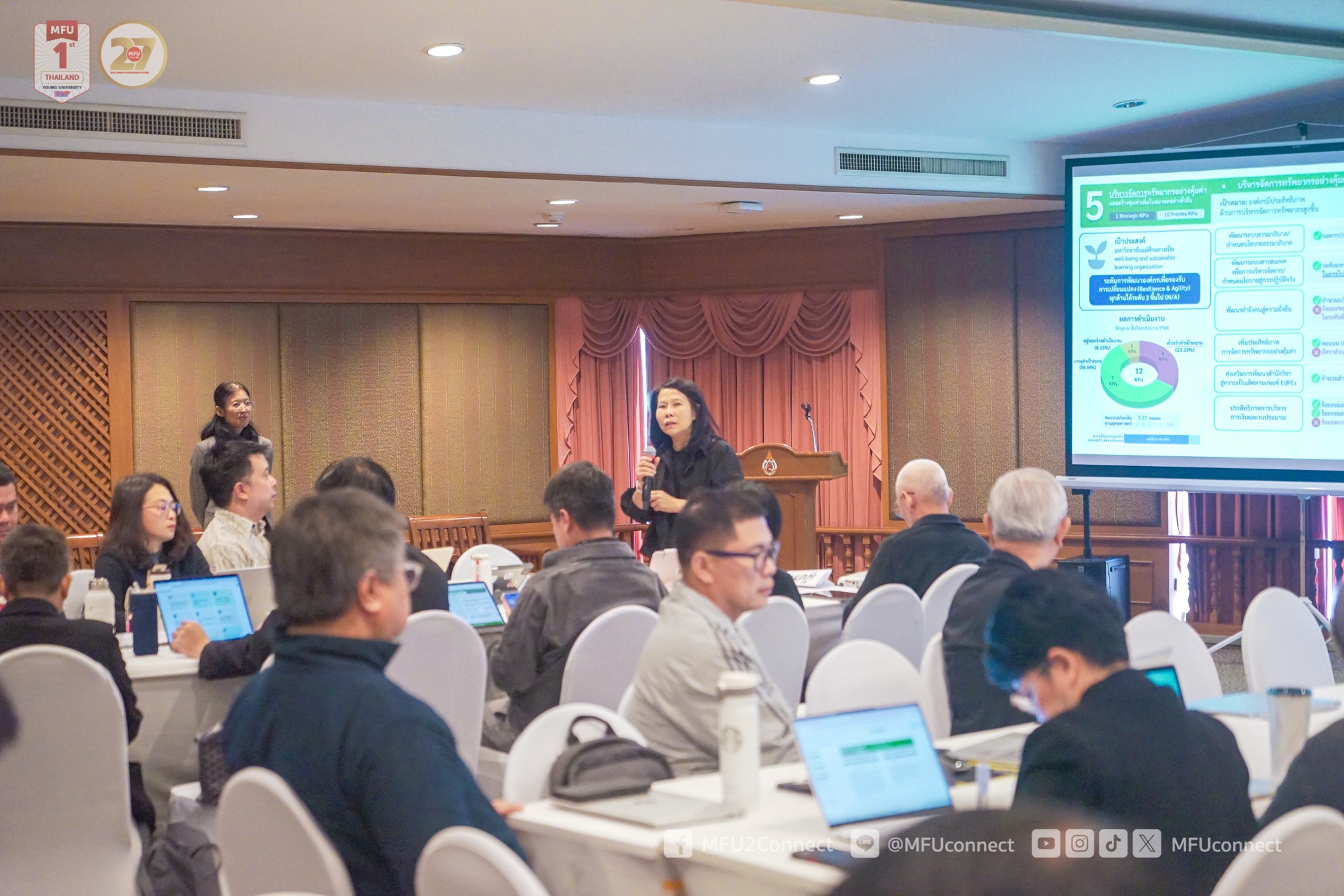 เมื่อวันเสาร์ที่ 29 พฤศจิกายน 2568 ผู้ช่วยศาสตราจารย์ ดร.มัชฌิมา นราดิศร อธิการบดีมหาวิทยาลัยแม่ฟ้าหลวง เป็นประธานการประชุมเพื่อจัดทำแผนพัฒนามหาวิทยาลัย ฉบับที่ 6 (พ.ศ. 2570-2574) ณ ห้องเชียงแสน อาคารวันชัย ศิริชนะ โดยเป็นการประชุมเพื่อแลกเปลี่ยนวิสัยทัศน์และมุมมองเชิงกลยุทธ์ร่วมกันของผู้บริหารระดับหัวหน้าหน่วยงาน เพื่อร่วมกำหนดกรอบแผนพัฒนามหาวิทยาลัย เป้าประสงค์และยุทธศาสตร์หลักของมหาวิทยาลัย