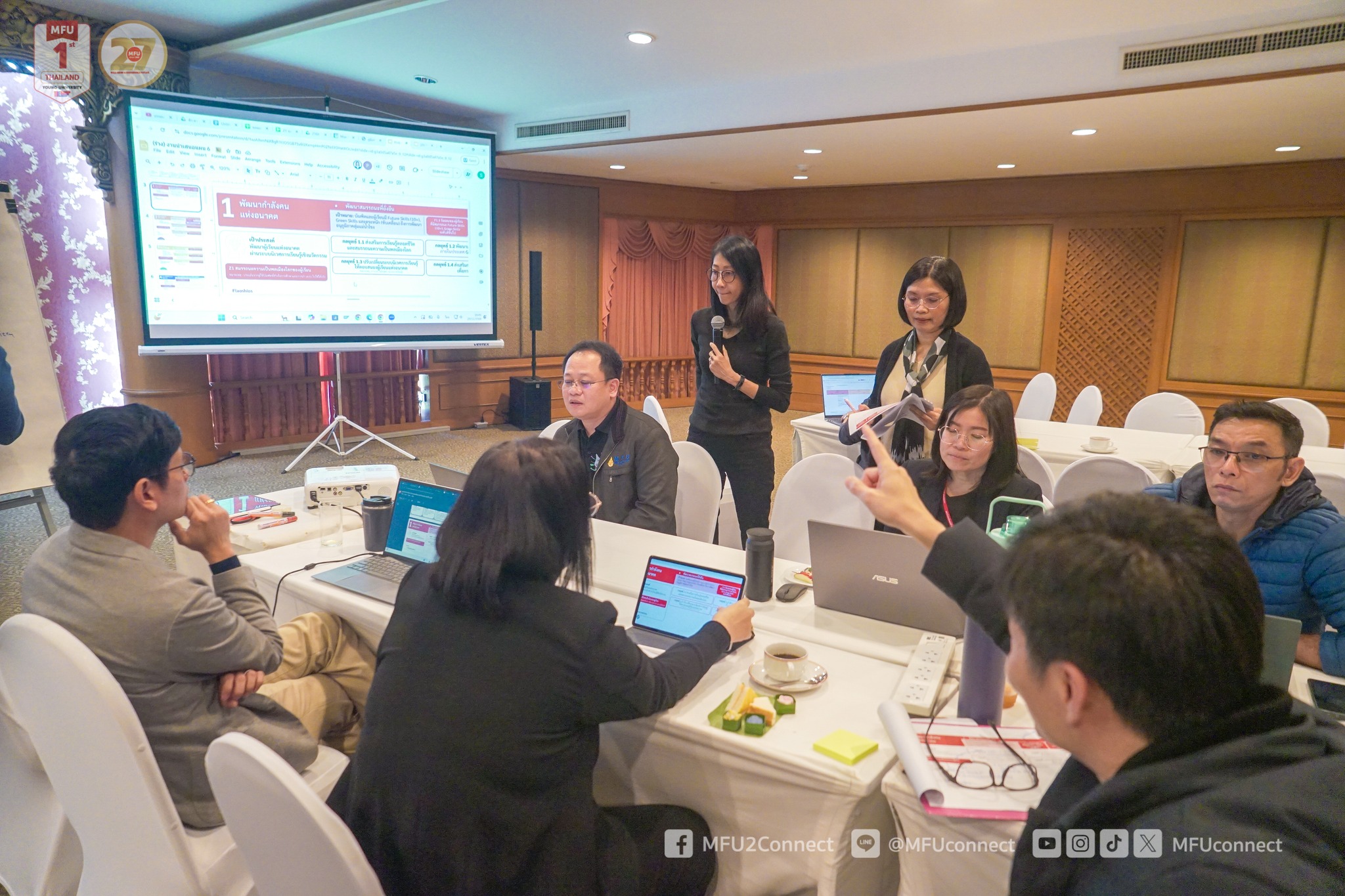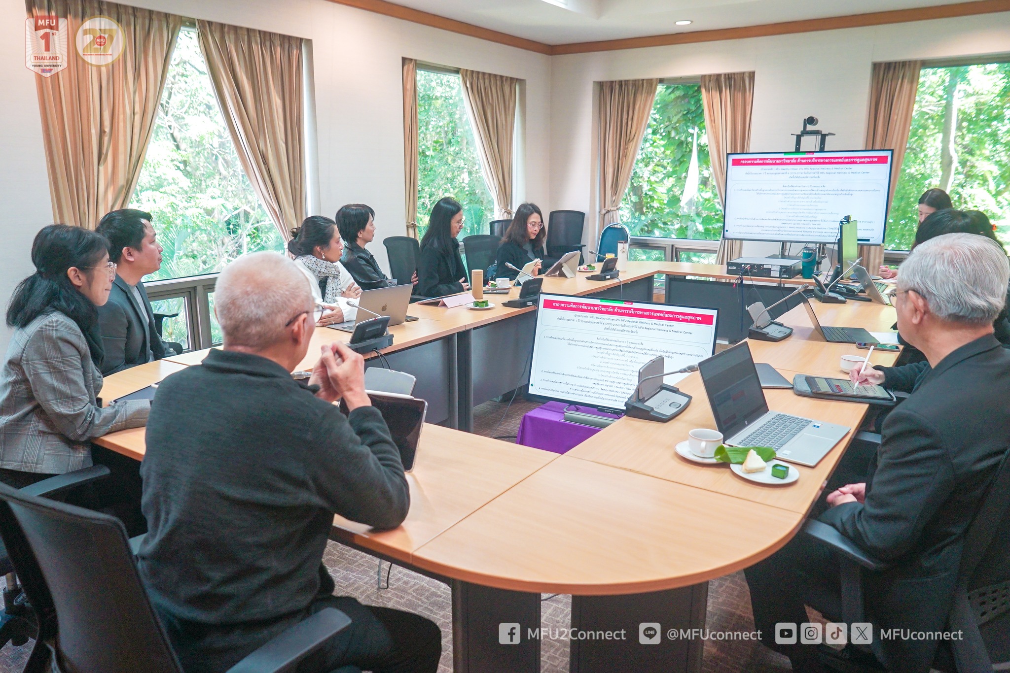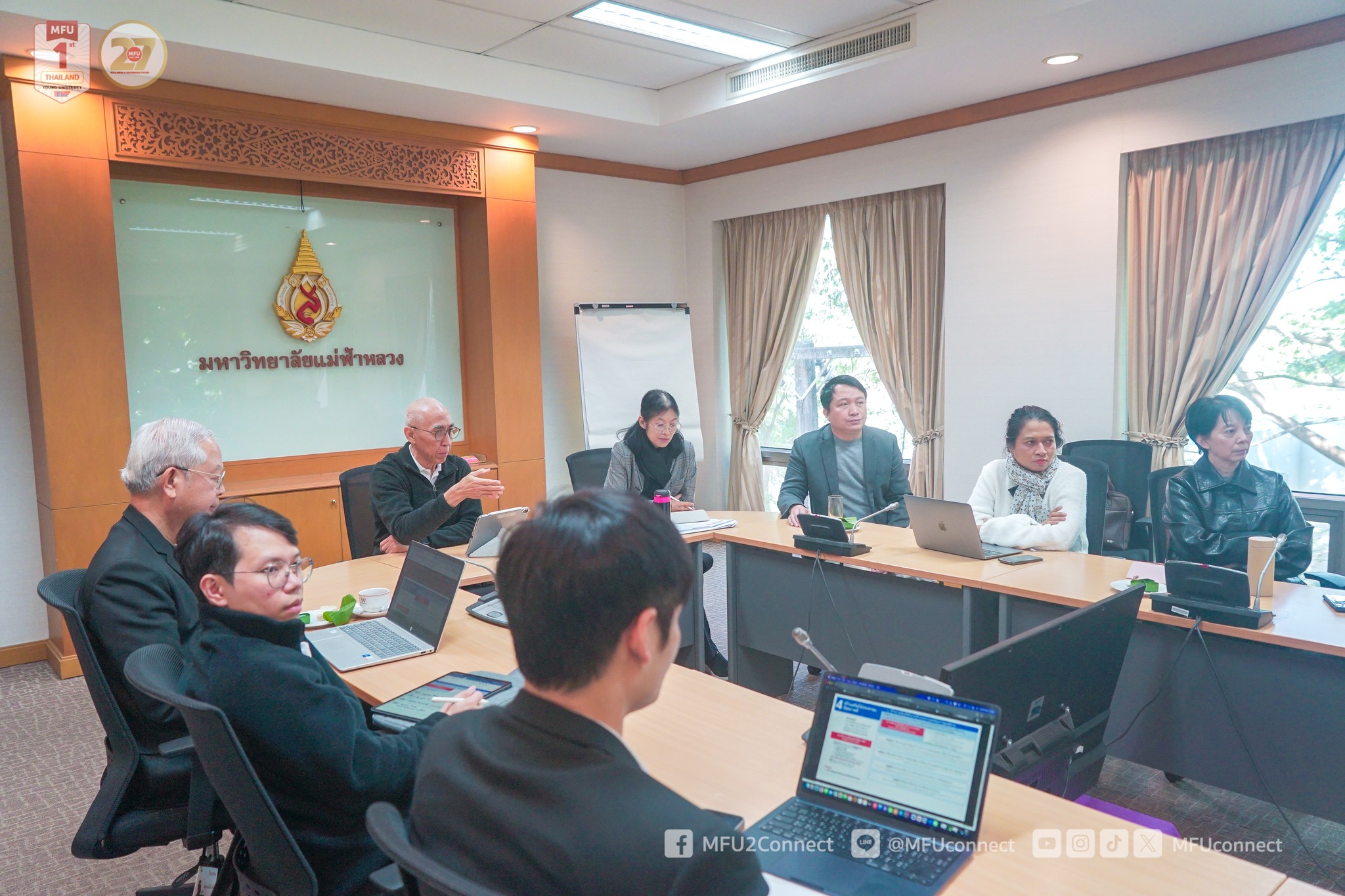On Saturday, 29 November 2025, Assistant Professor Dr. Matchima Naradisorn, President of Mae Fah Luang University, chaired a meeting to formulate the University’s Sixth Development Plan (2027–2031) at Chiang Saen Meeting Room, Vanchai Sirichana Building, Mae Fah Luang University. The meeting provided a platform for academic and administrative leaders to exchange visions and strategic perspectives, with the goal of jointly outlining the framework, key objectives, and core strategies for the University’s future development.