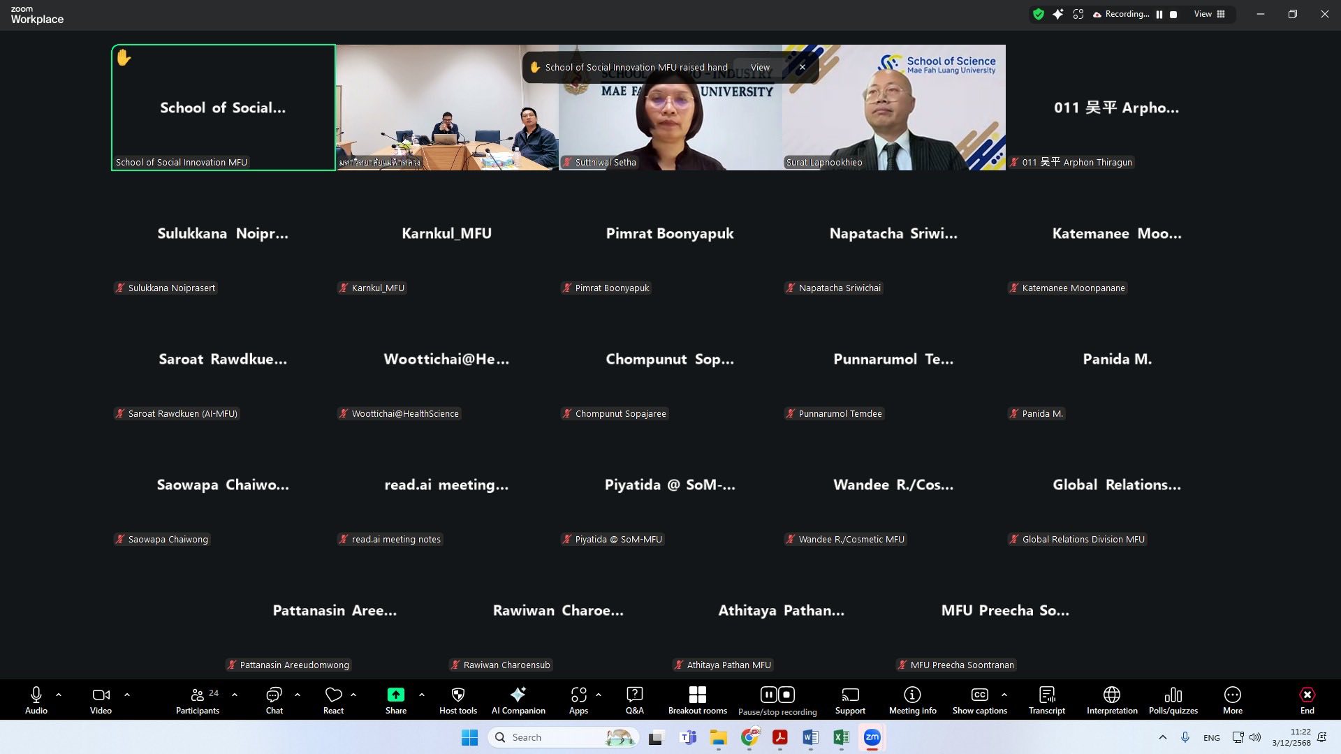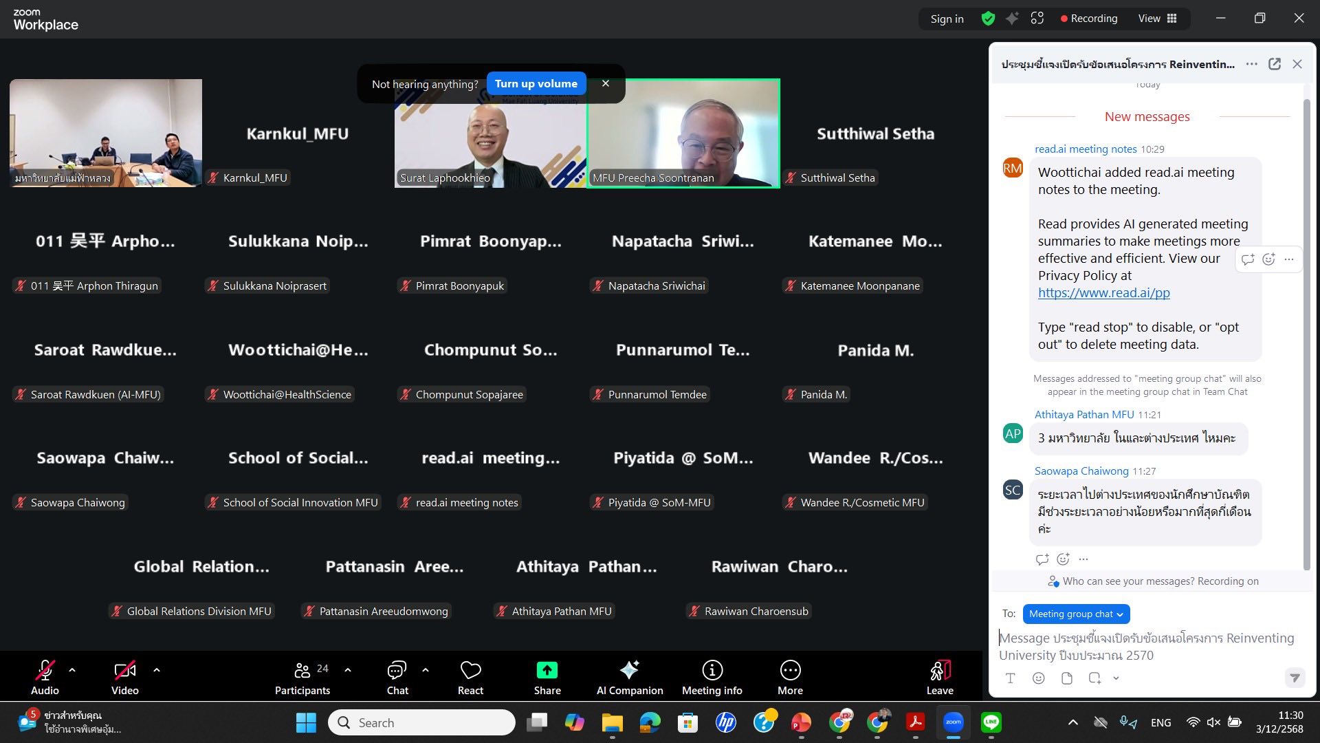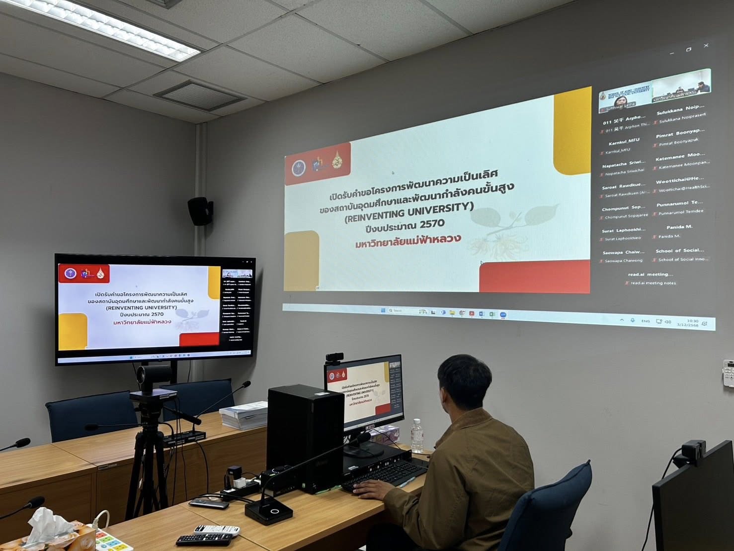 ส่วนบริหารงานวิจัย มหาวิทยาลัยแม่ฟ้าหลวง ได้จัดประชุมชี้แจงการเปิดรับข้อเสนอโครงการ Reinventing University ประจำปีงบประมาณ 2570 (รอบคำขอขาขึ้น) ของสำนักงานปลัดกระทรวงการอุดมศึกษา วิทยาศาสตร์ วิจัยและนวัตกรรม (สป.อว.) เมื่อวันที่ 3 ธันวาคม 2568 เวลา 10.30–12.00 น. ผ่านระบบ Zoom Meeting โดยมีผู้เข้าร่วมจำนวน 24 ท่าน