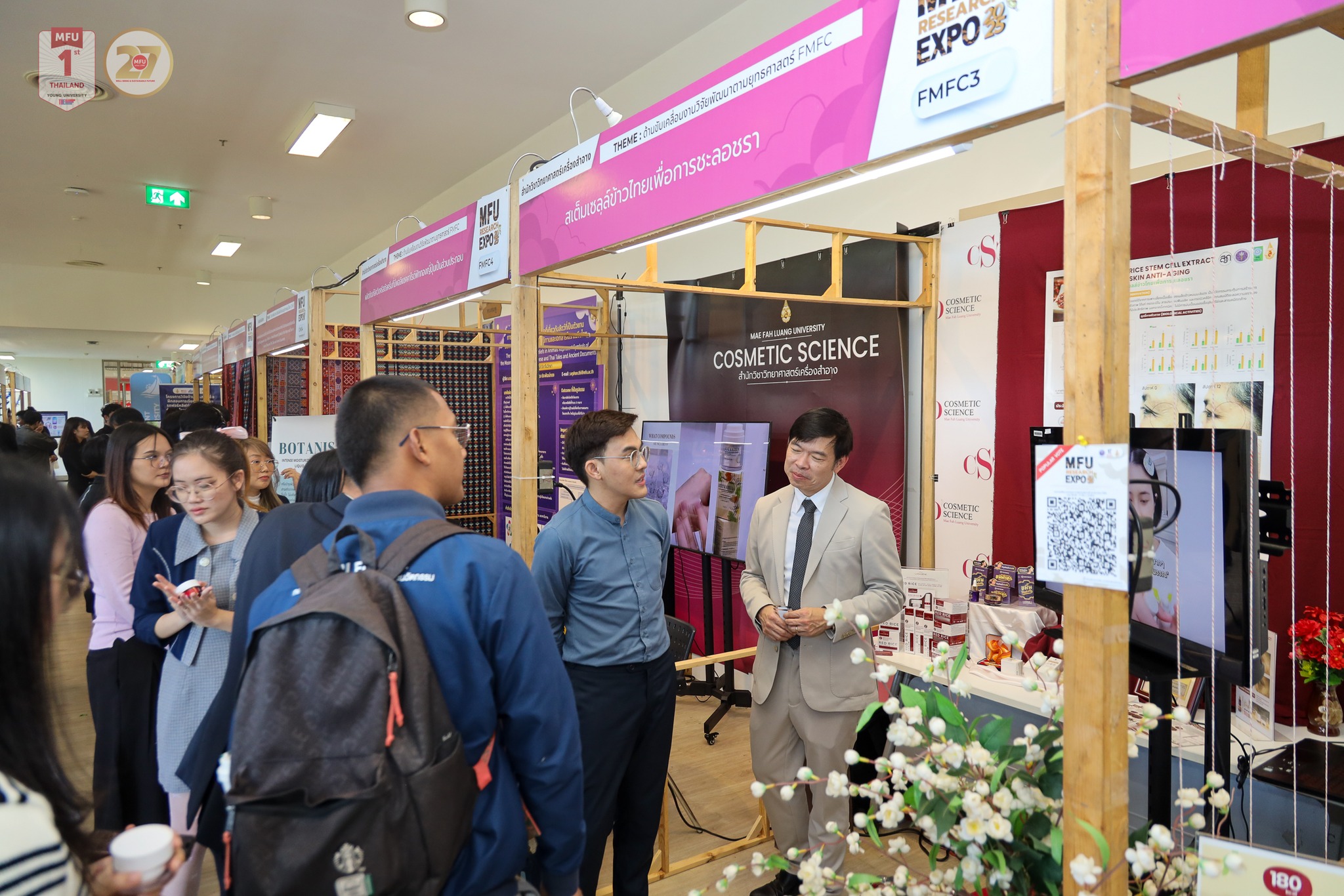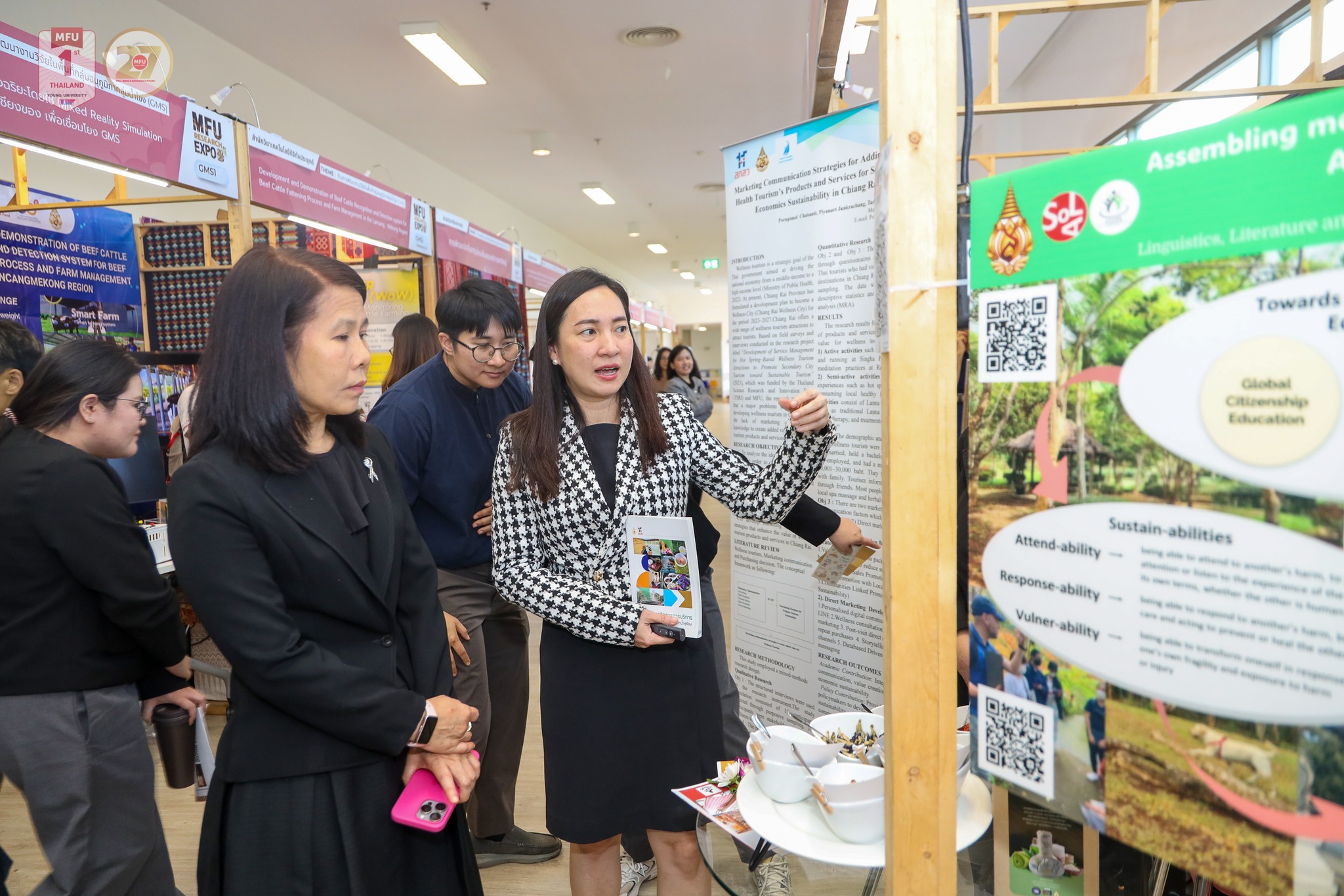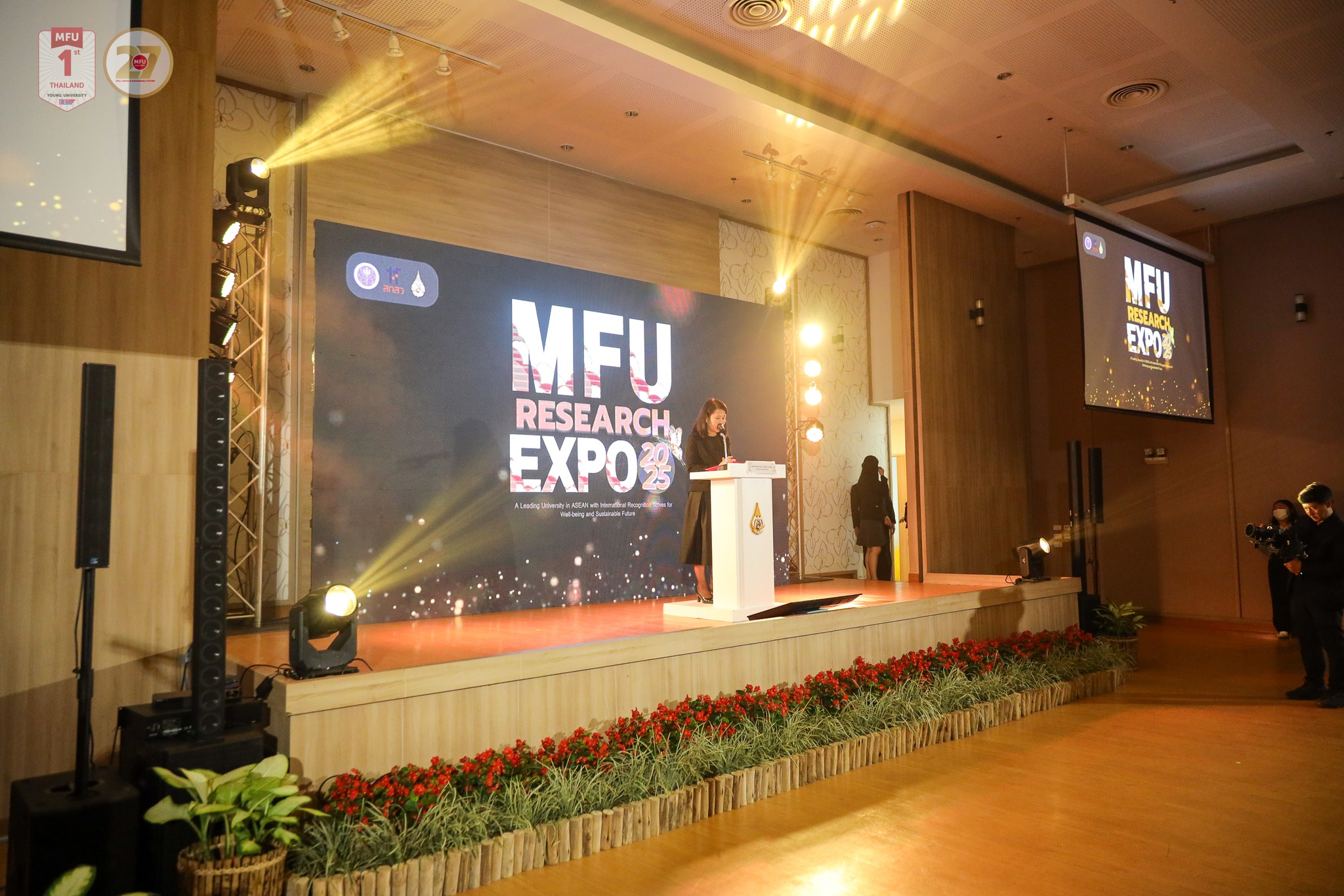 “MFU RESEARCH EXPO 2025” จัดขึ้นระหว่างวันที่ 23 - 24 ธันวาคม 2568 ภายในงานมีการจัดแสดงผลงานวิจัยของคณาจารย์และนักวิจัยของมหาวิทยาลัย ที่สะท้อนถึงศักยภาพด้านการวิจัย นวัตกรรม และองค์ความรู้ที่มีหลากหลายด้านจาก 14 สำนักวิชา ไม่ว่าจะเป็น ด้านการพัฒนาทรัพยากรธรรรมชาติและสิ่งแวดล้อม ด้านการพัฒนาสุขภาพและผลิตภัณฑ์ธรรรมชาติ ด้านการสร้างความเข้มแข็งของสังคมและเศรษฐกิจแบบยั่งยืน ด้านการพัฒนาเทคโนโลยีดิจิทัลเพื่อพัฒนาเศรษฐกิจและสังคม ด้านการพัฒนางานวิจัยในพื้นที่กลุ่มอนุภูมิภาคลุ่มน้ำโขง (GMS) และ ด้านการขับเคลื่อนงานวิจัยพัฒนาตามยุทธศาสตร์ FMFC