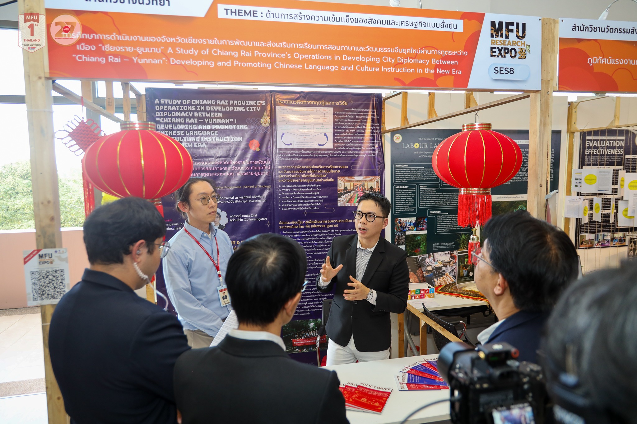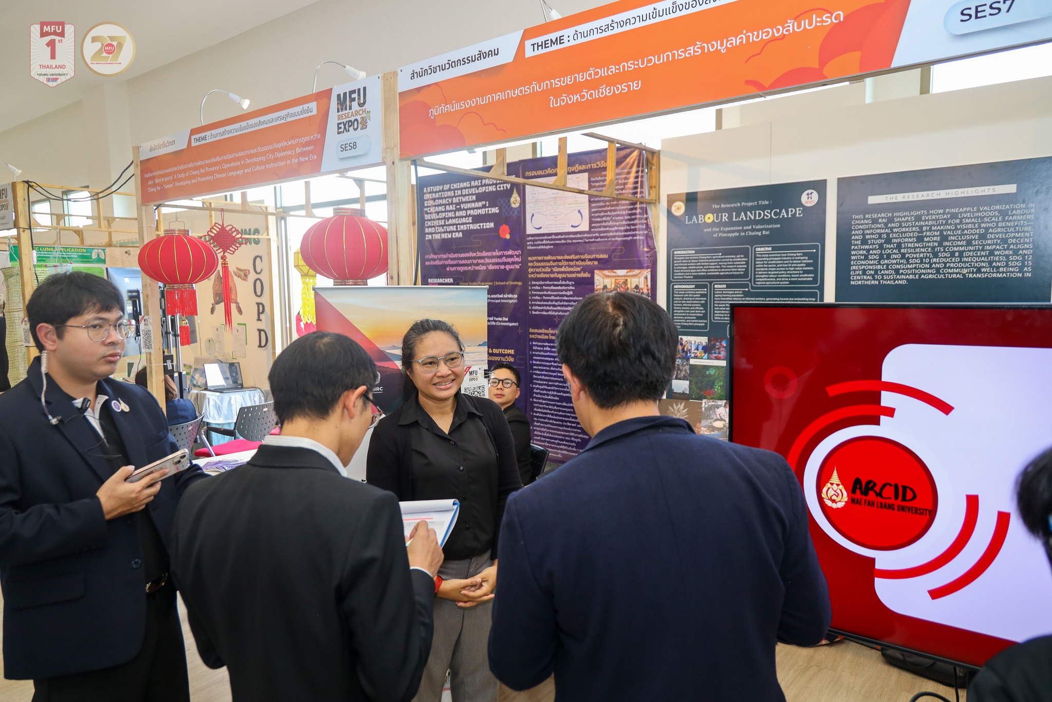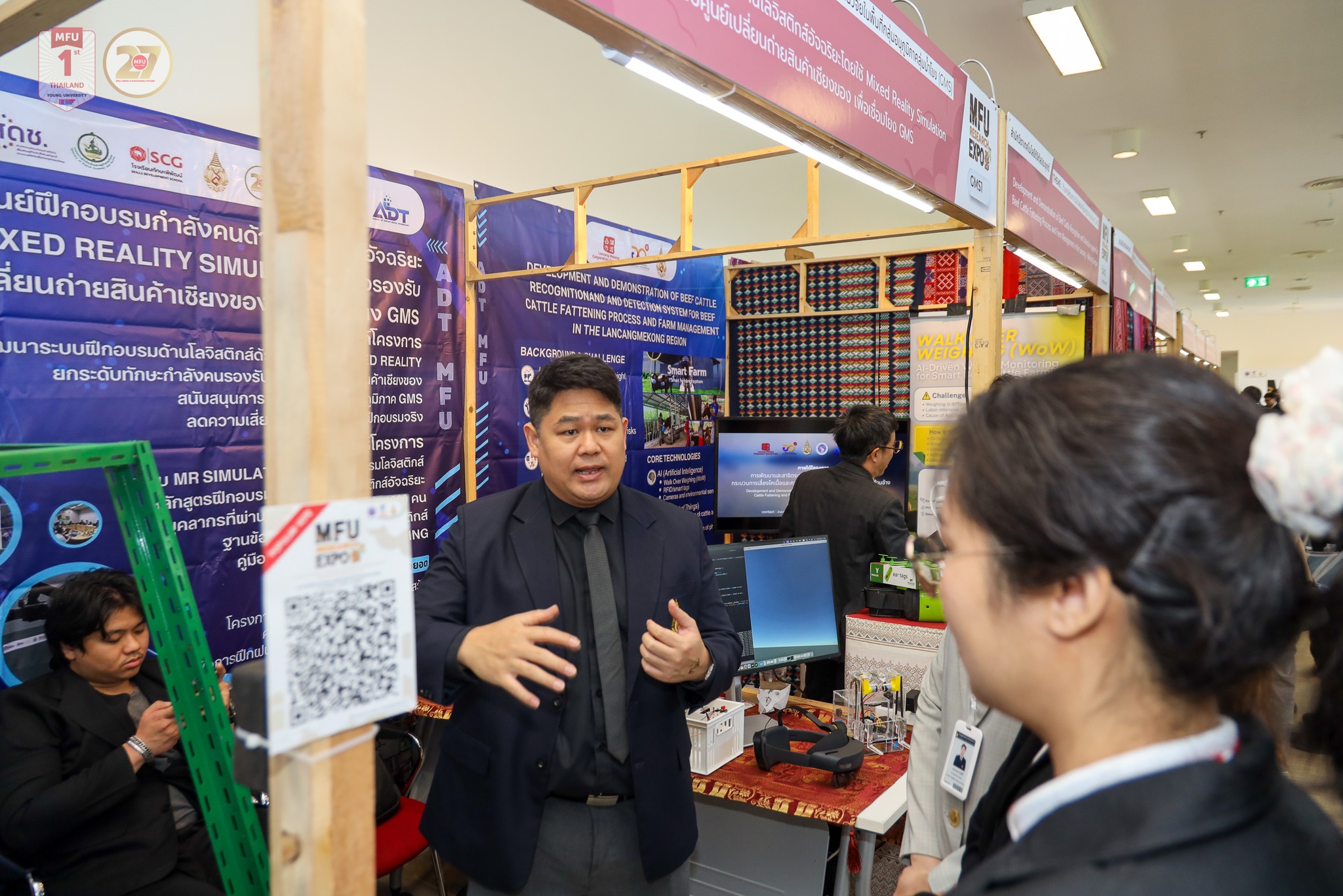 “MFU RESEARCH EXPO 2025” จัดขึ้นระหว่างวันที่ 23 - 24 ธันวาคม 2568 ภายในงานมีการจัดแสดงผลงานวิจัยของคณาจารย์และนักวิจัยของมหาวิทยาลัย ที่สะท้อนถึงศักยภาพด้านการวิจัย นวัตกรรม และองค์ความรู้ที่มีหลากหลายด้านจาก 14 สำนักวิชา ไม่ว่าจะเป็น ด้านการพัฒนาทรัพยากรธรรรมชาติและสิ่งแวดล้อม ด้านการพัฒนาสุขภาพและผลิตภัณฑ์ธรรรมชาติ ด้านการสร้างความเข้มแข็งของสังคมและเศรษฐกิจแบบยั่งยืน ด้านการพัฒนาเทคโนโลยีดิจิทัลเพื่อพัฒนาเศรษฐกิจและสังคม ด้านการพัฒนางานวิจัยในพื้นที่กลุ่มอนุภูมิภาคลุ่มน้ำโขง (GMS) และ ด้านการขับเคลื่อนงานวิจัยพัฒนาตามยุทธศาสตร์ FMFC