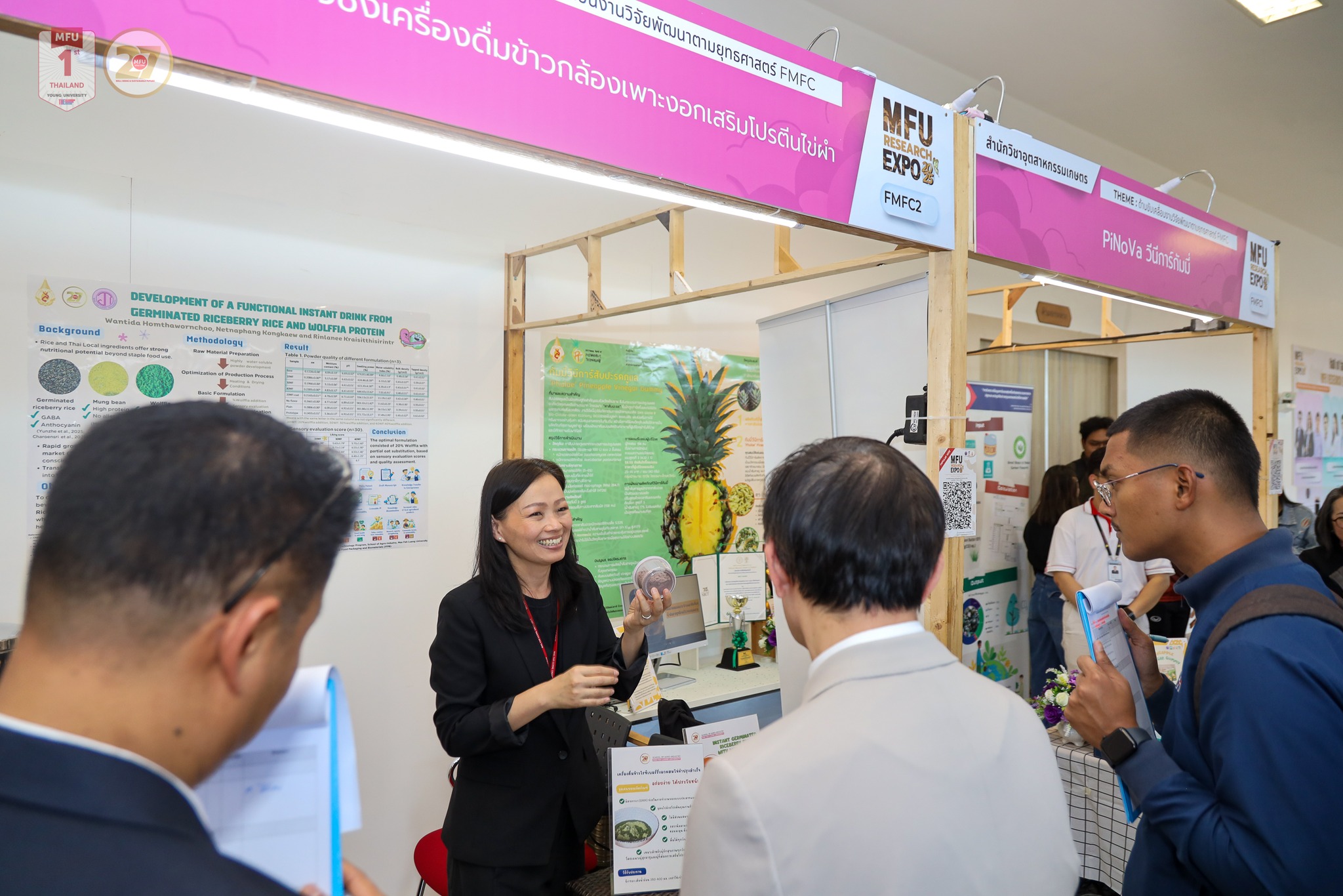 The expo features research outputs from MFU’s 14 schools, reflecting the University’s multidisciplinary approach to addressing complex global challenges. Key focus areas include natural resource and environmental sustainability, health and natural products, inclusive and sustainable socio-economic development, digital technology for social advancement, research in the Greater Mekong Subregion (GMS) and the initiatives aligned with MFU’s FMFC strategic framework.