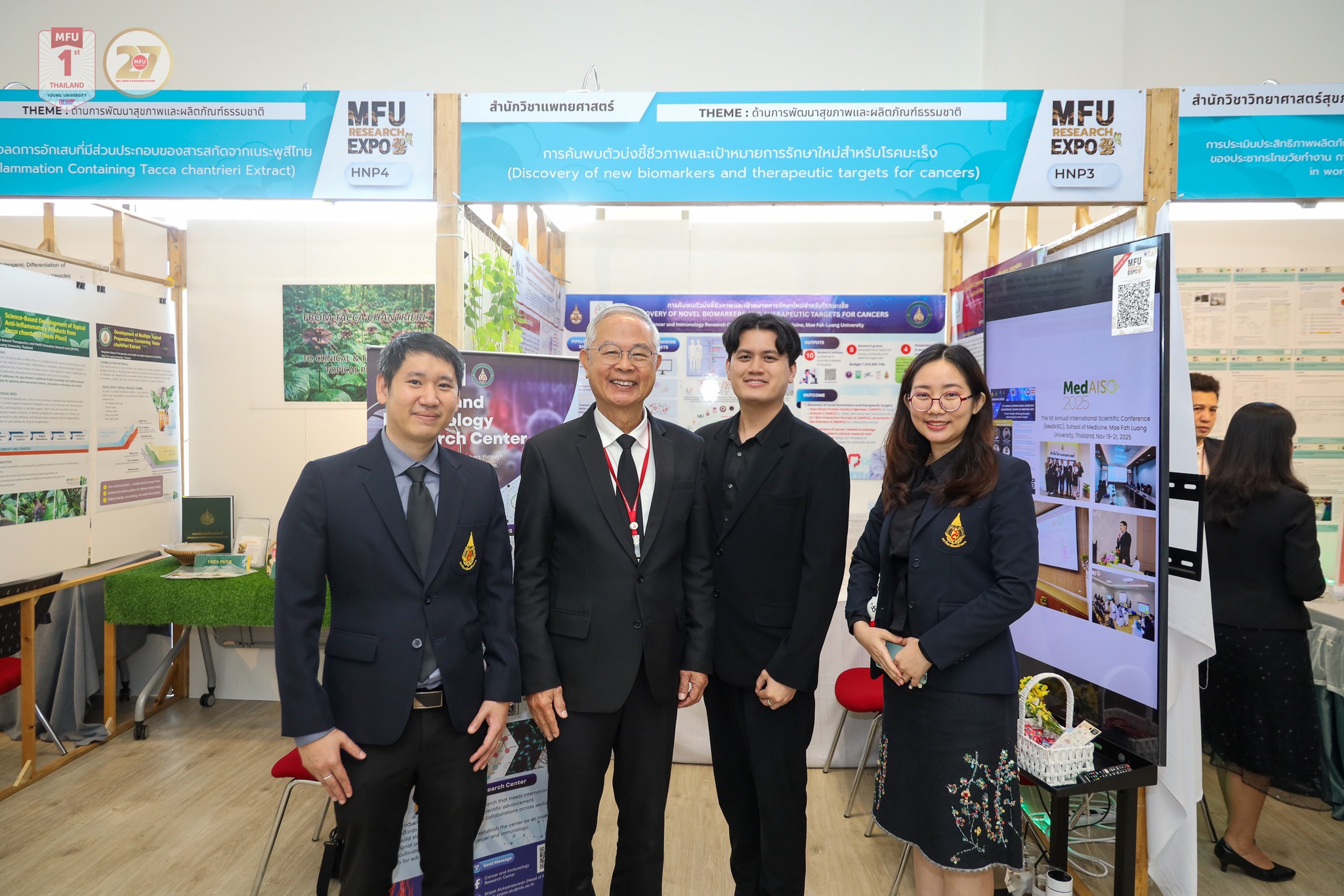 Centered on the theme "Well-being and Sustainable Future," the expo highlights MFU’s commitment to driving research that improves quality of life. The opening ceremony featured welcoming remarks by Asst. Prof. Dr. Matchima Naradisorn, President of MFU, and a report by Prof. Dr. Sujitra Wongkasemjit, Vice President. Distinguished guests included Prof. Dr. Komgrit Leksakul, Deputy Executive Director of Thailand Science Research and Innovation (TSRI); Prof. Dr. Somkiat Wattanasirichaigoon, M.D., Former Executive Director of HSRI; and Assoc. Prof. Dr. Nisit Panthamit, Head of Center for ASEAN studies CMU, Chiang Mai University.