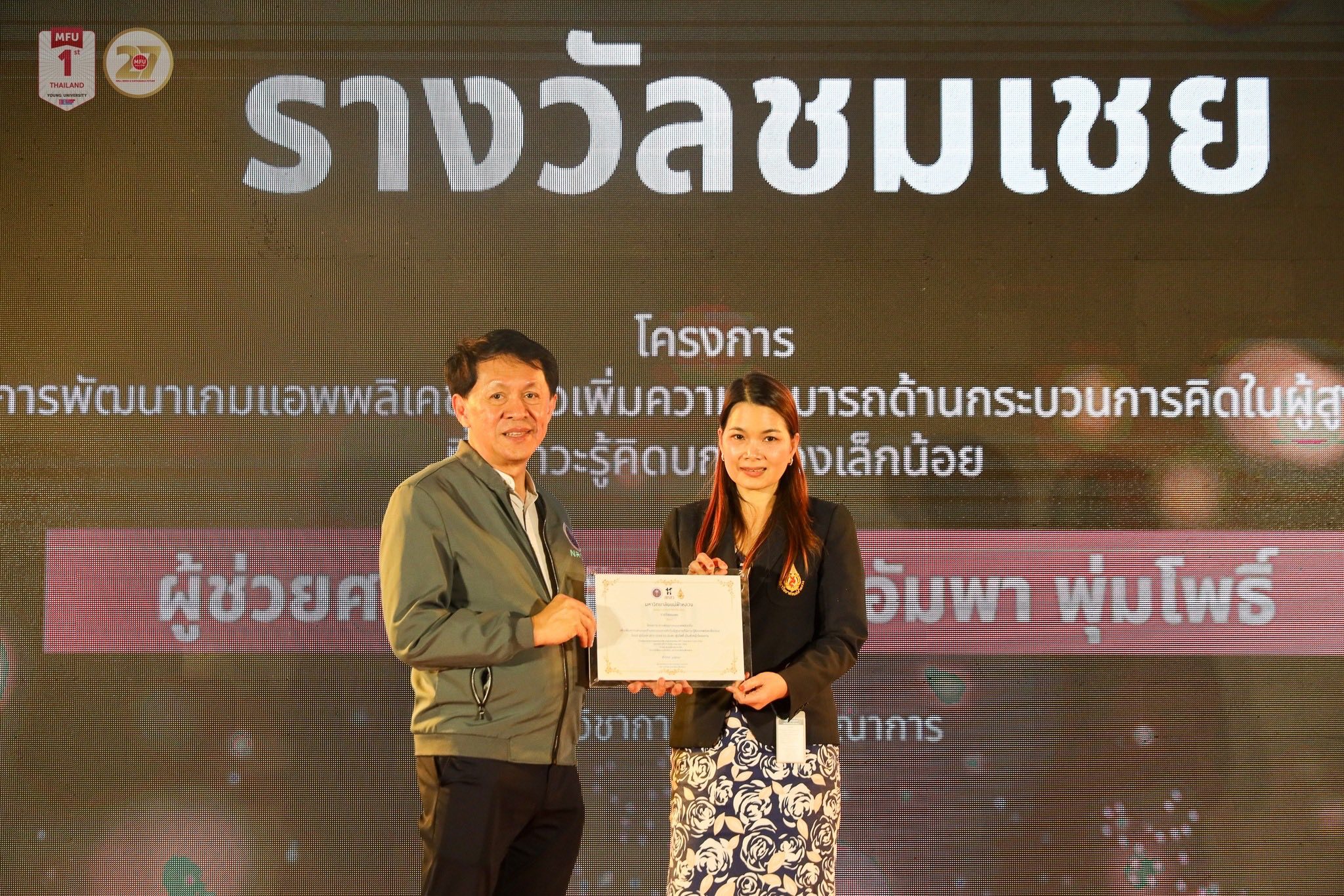 ซึ่งเป็นเวทีสำคัญในการสะท้อนศักยภาพผลงานวิจัยและนวัตกรรมของมหาวิทยาลัยแม่ฟ้าหลวง ที่มุ่งสร้างคุณค่าเชิงวิชาการ ควบคู่กับการนำองค์ความรู้ไปใช้ประโยชน์ต่อสังคม ภายใต้วิสัยทัศน์ “มหาวิทยาลัยแห่งการสร้างความเป็นอยู่ที่ดีและอนาคตที่ยั่งยืน (Well-Being and Sustainable Future)”