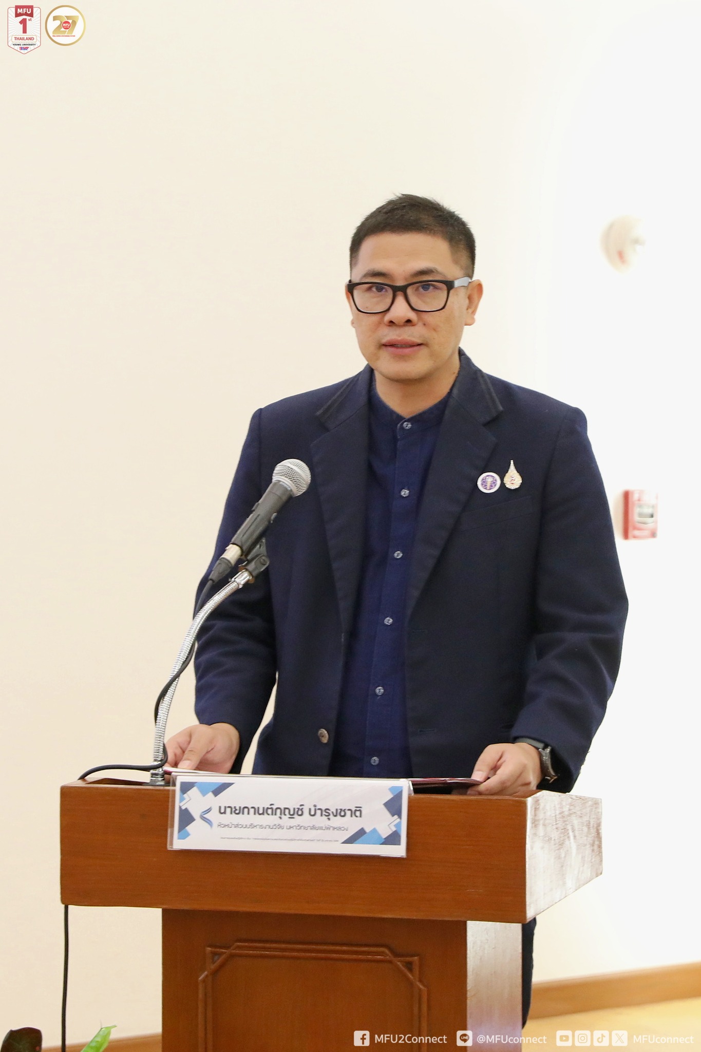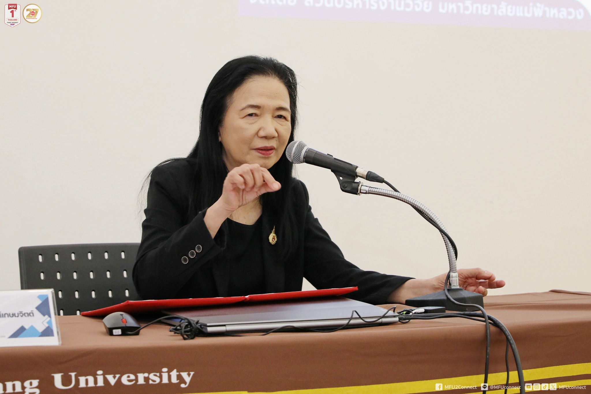 The opening ceremony was presided over by Professor Dr. Sujitra Wongkasemjit, Vice President of Mae Fah Luang University, with Mr. Karnkul Bumroongchad, Head of the Research Administration Division, delivering the opening remarks and outlining the objectives of the training. The program aimed to enhance laboratory safety standards within the University and to strengthen the knowledge, understanding, and essential skills of the Mae Fah Luang University Laboratory Safety Committee and the Committee of Chemical Laboratory Safety Auditors in conducting systematic chemical laboratory safety assessments in compliance with relevant standards.