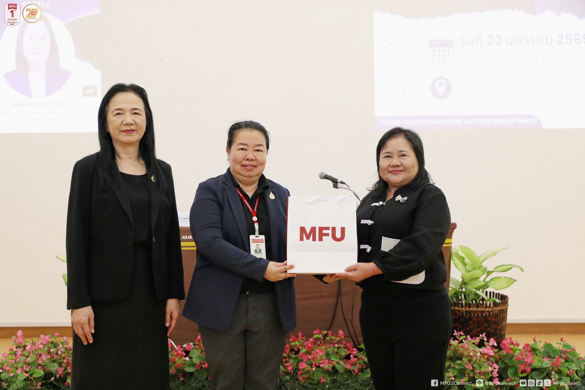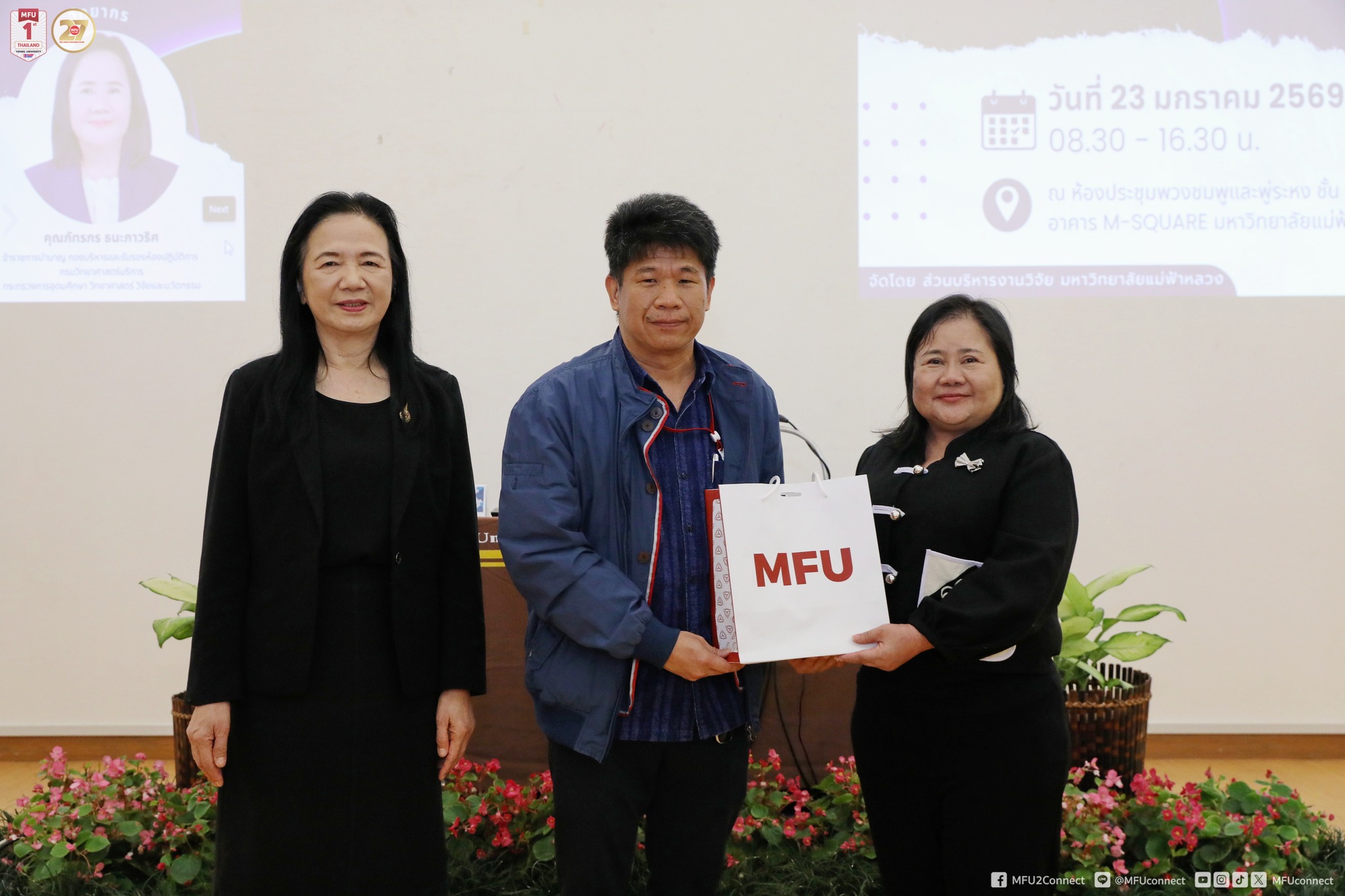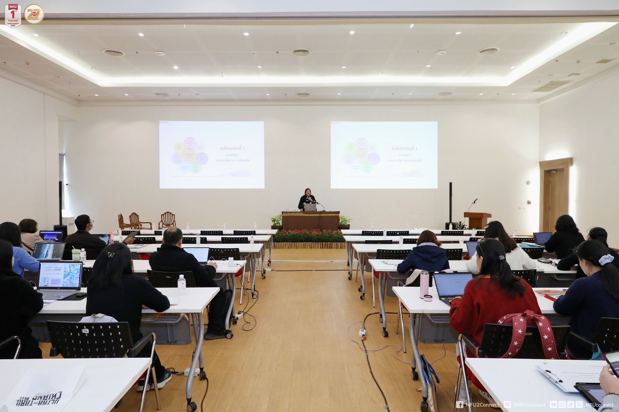 ส่วนบริหารงานวิจัย มหาวิทยาลัยแม่ฟ้าหลวง จัดโครงการอบรมเชิงปฏิบัติการเรื่อง “การตรวจประเมินความปลอดภัยของห้องปฏิบัติการที่เกี่ยวกับสารเคมี” เมื่อวันศุกร์ที่ 23 มกราคม 2569 เวลา 08.30–16.30 น. ณ ห้องประชุมพวงชมพูและพู่ระหง ชั้น 5 อาคาร M-Square มหาวิทยาลัยแม่ฟ้าหลวง