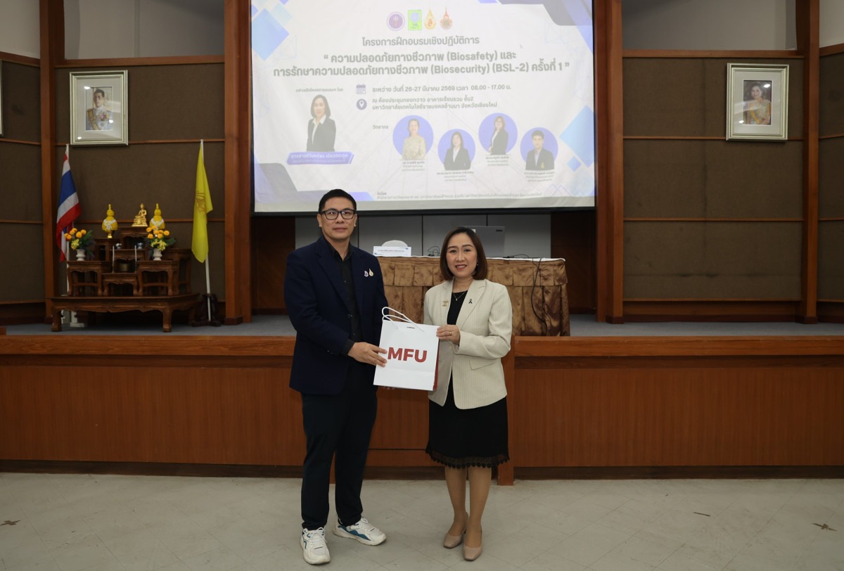 มหาวิทยาลัยแม่ฟ้าหลวง (Mae Fah Luang University) ขับเคลื่อนบทบาทสำคัญด้านความปลอดภัยทางชีวภาพของประเทศ ร่วมกับสำนักงานการวิจัยแห่งชาติ (วช.) กระทรวงการอุดมศึกษา วิทยาศาสตร์ วิจัยและนวัตกรรม (อว.) และมหาวิทยาลัยเทคโนโลยีราชมงคลล้านนา ในการจัดโครงการอบรมเชิงปฏิบัติการ เรื่อง “ความปลอดภัยทางชีวภาพ (Biosafety) และการรักษาความปลอดภัยทางชีวภาพ (Biosecurity)” ระหว่างวันที่ 26 – 27 มีนาคม 2569 ณ ห้องประชุมทองกวาว อาคารเรียนรวม มทร.ล้านนา จังหวัดเชียงใหม่